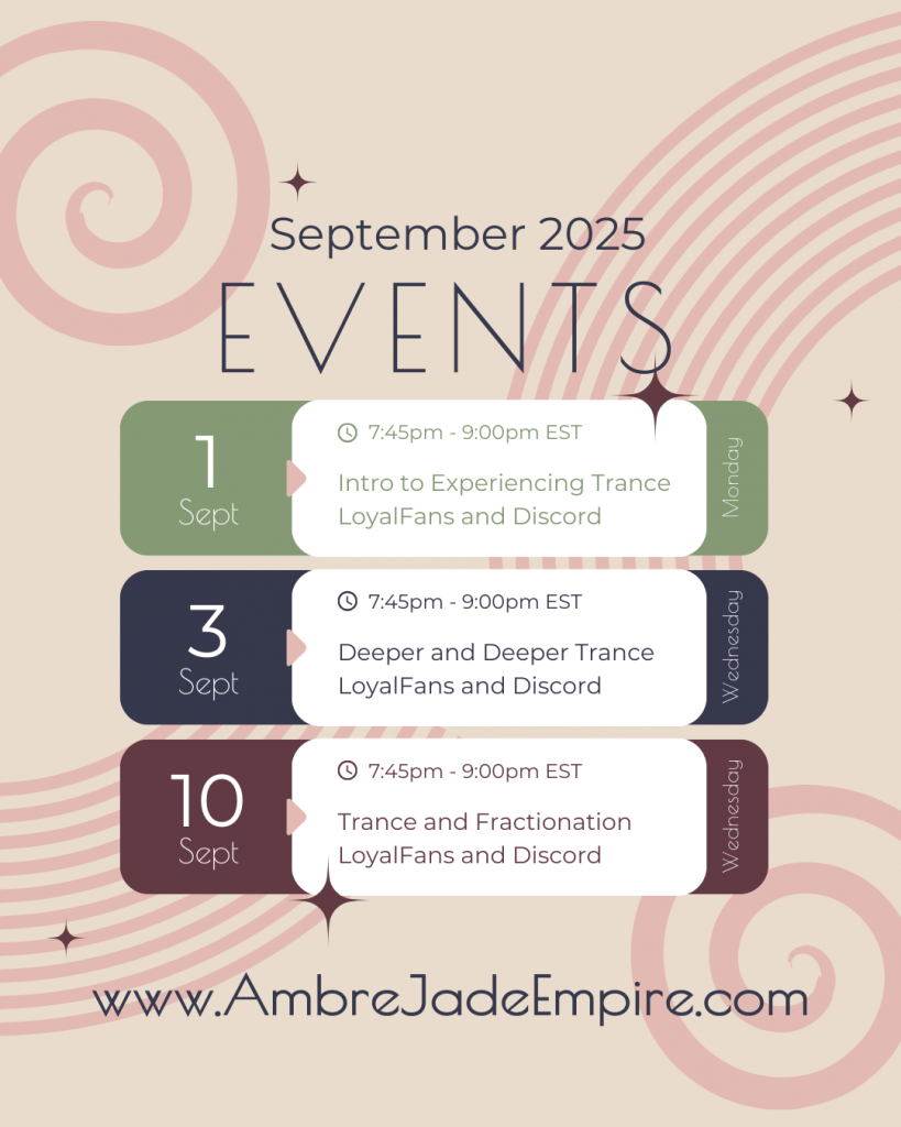 I will be offering group trance and erotic hypnosis sessions live via LoyalFans and my Discord server.